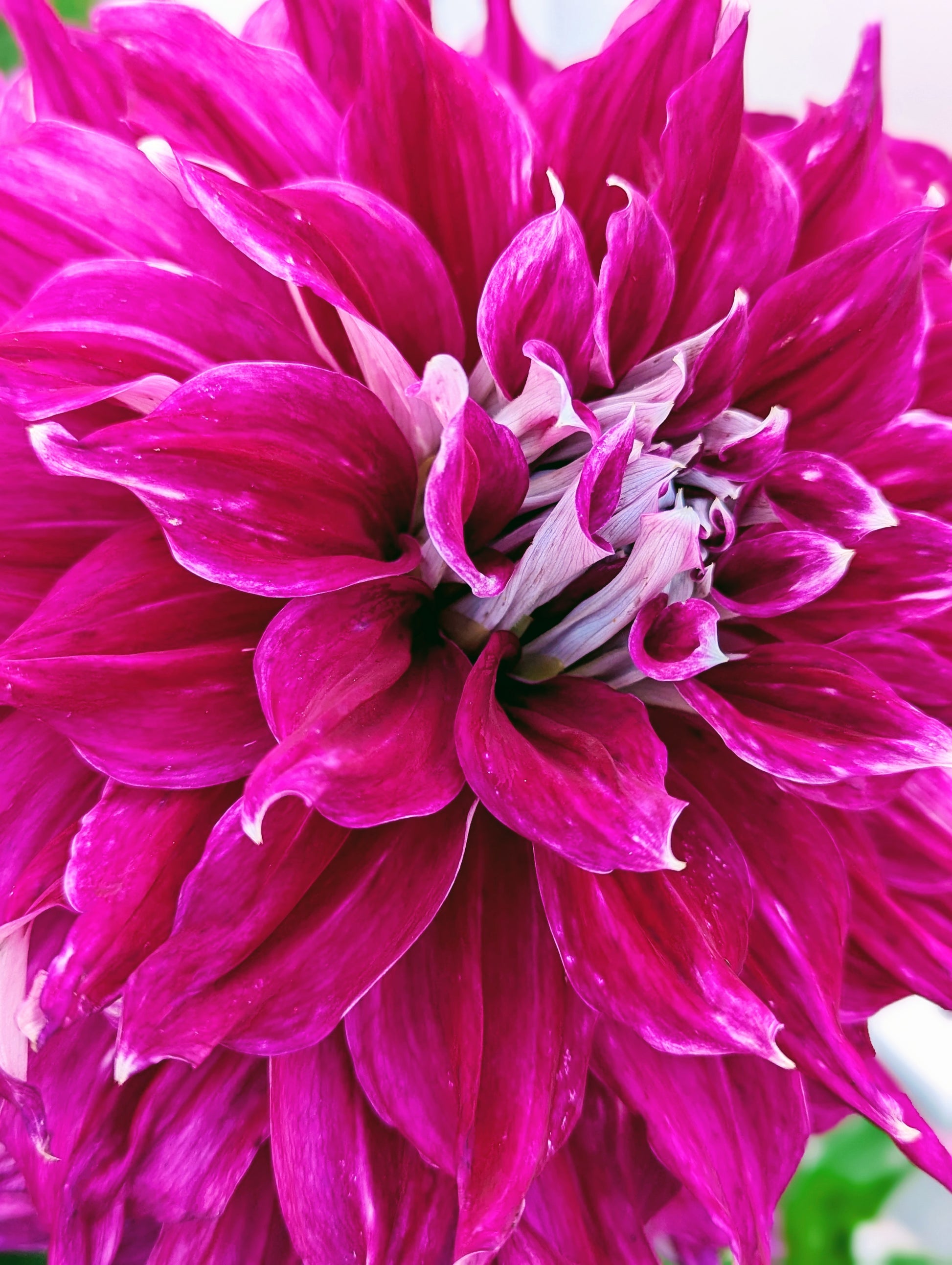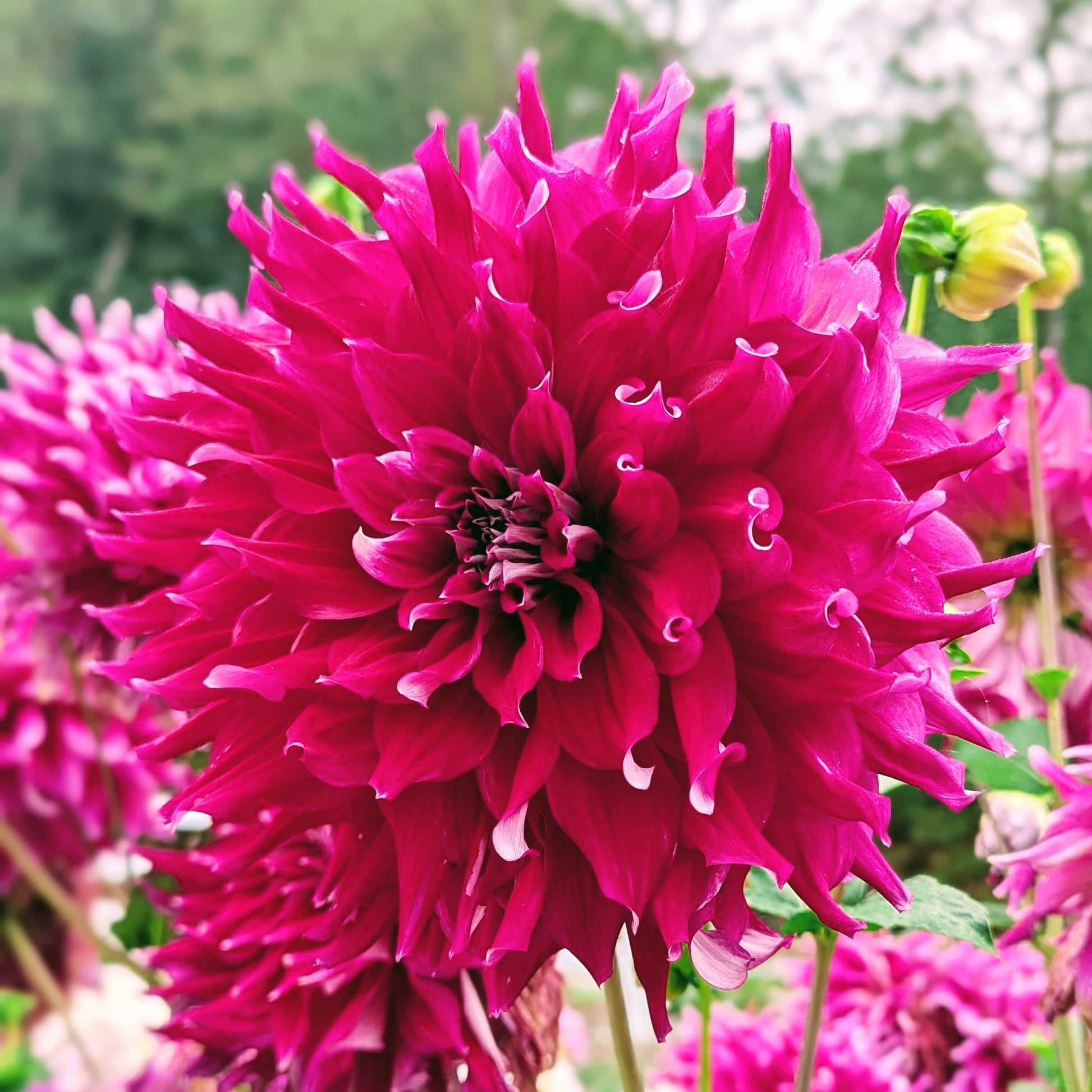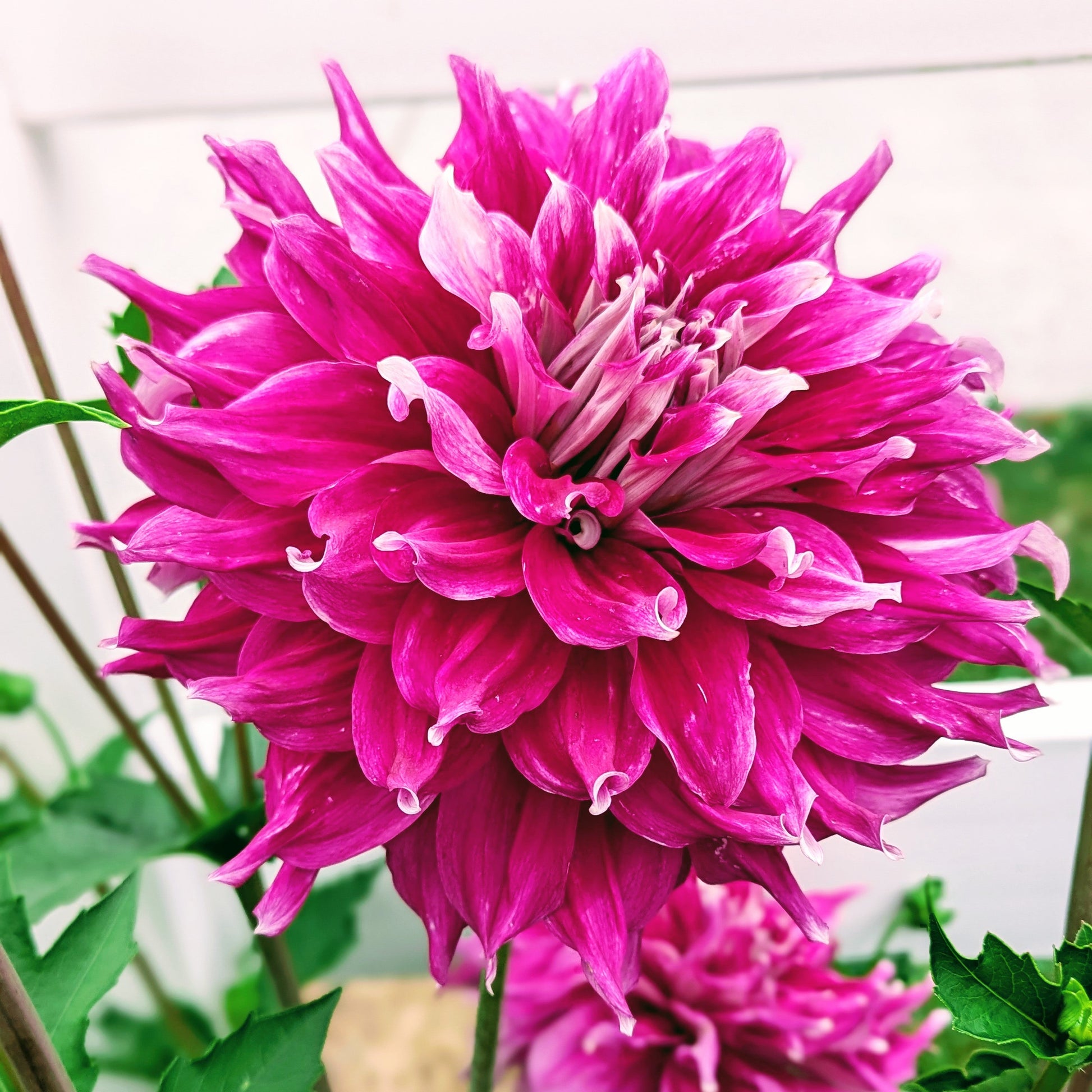 AC Loomis is simply petalicious! Saturated petals are wavy and plentiful. She plays well with others, or makes a stunning arrangement all on her own. Flowerheads do get heavy if overhead watering, or after a good rain, which is a perfect excuse to bring them inside. The white tips, and reverse that you glimpse under those wavy petals serve to accentuate her gorgeous color.