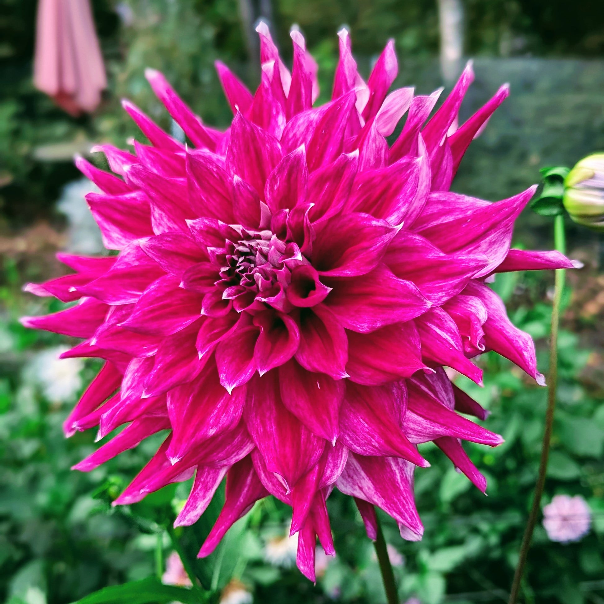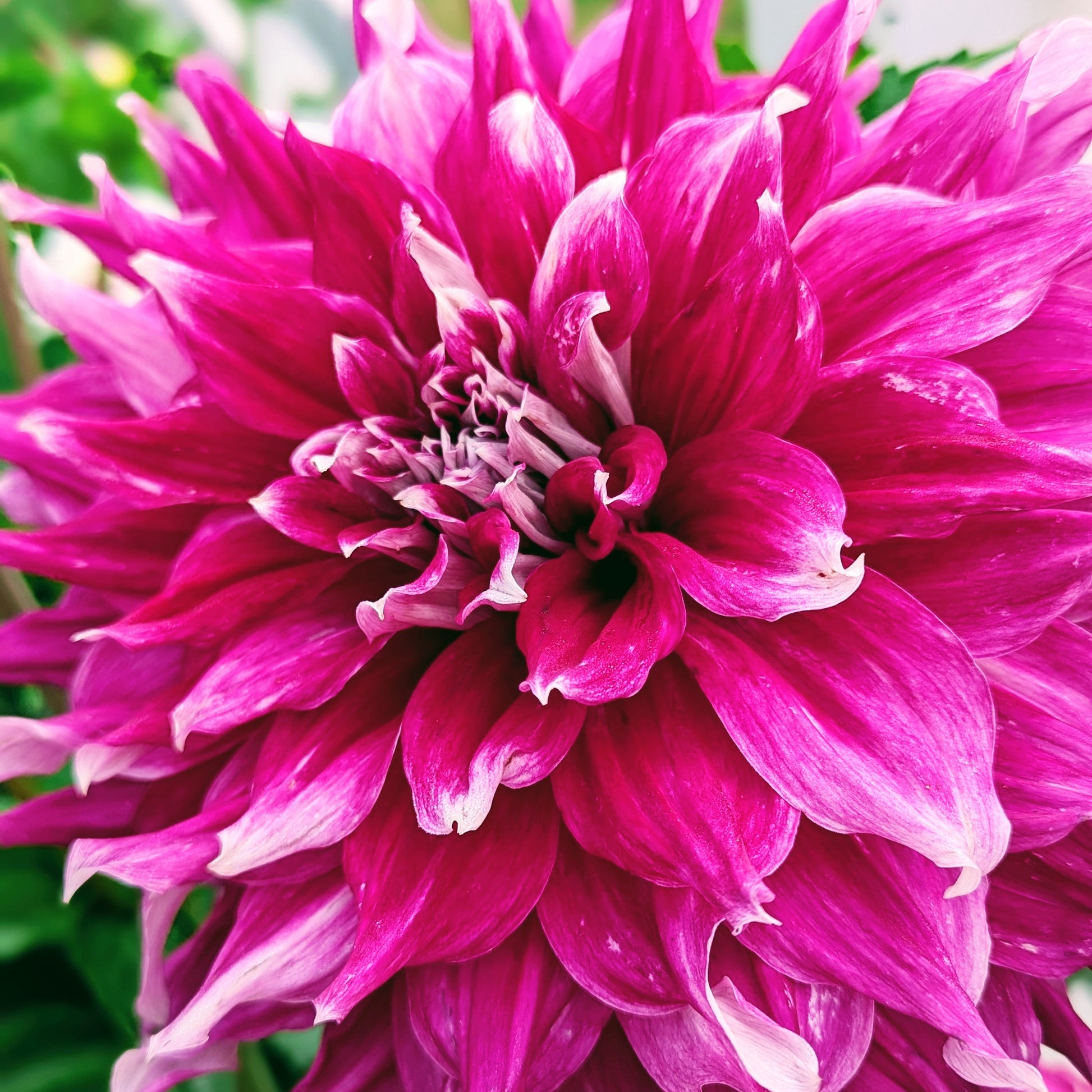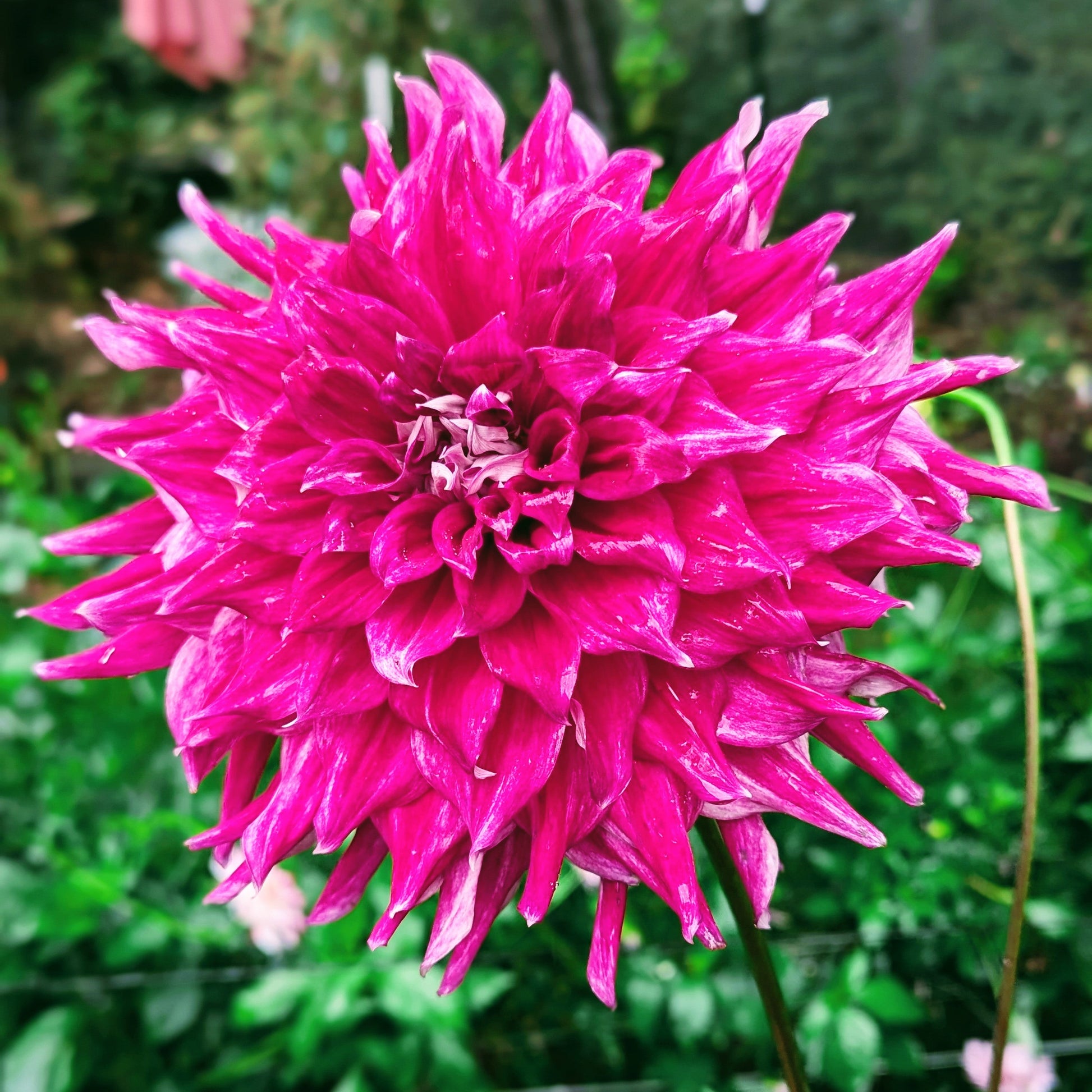 AC Loomis is simply petalicious! Saturated petals are wavy and plentiful. She plays well with others, or makes a stunning arrangement all on her own. Flowerheads do get heavy if overhead watering, or after a good rain, which is a perfect excuse to bring them inside. The white tips, and reverse that you glimpse under those wavy petals serve to accentuate her gorgeous color.