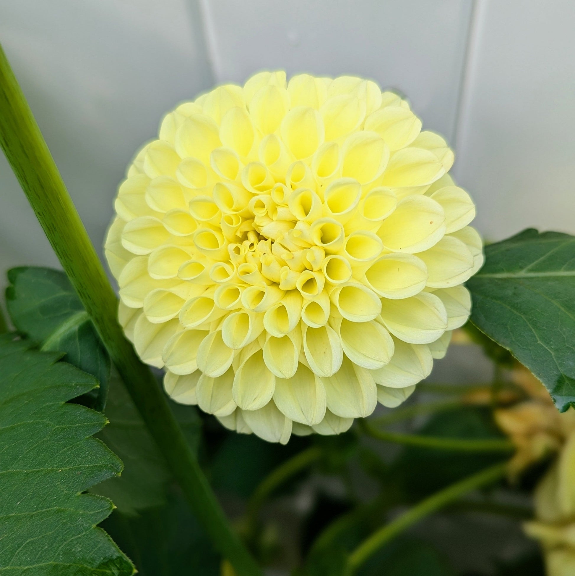 The softest butter yellow colors this perfectly formed ball. The perfect accent to those purple bouquets!
