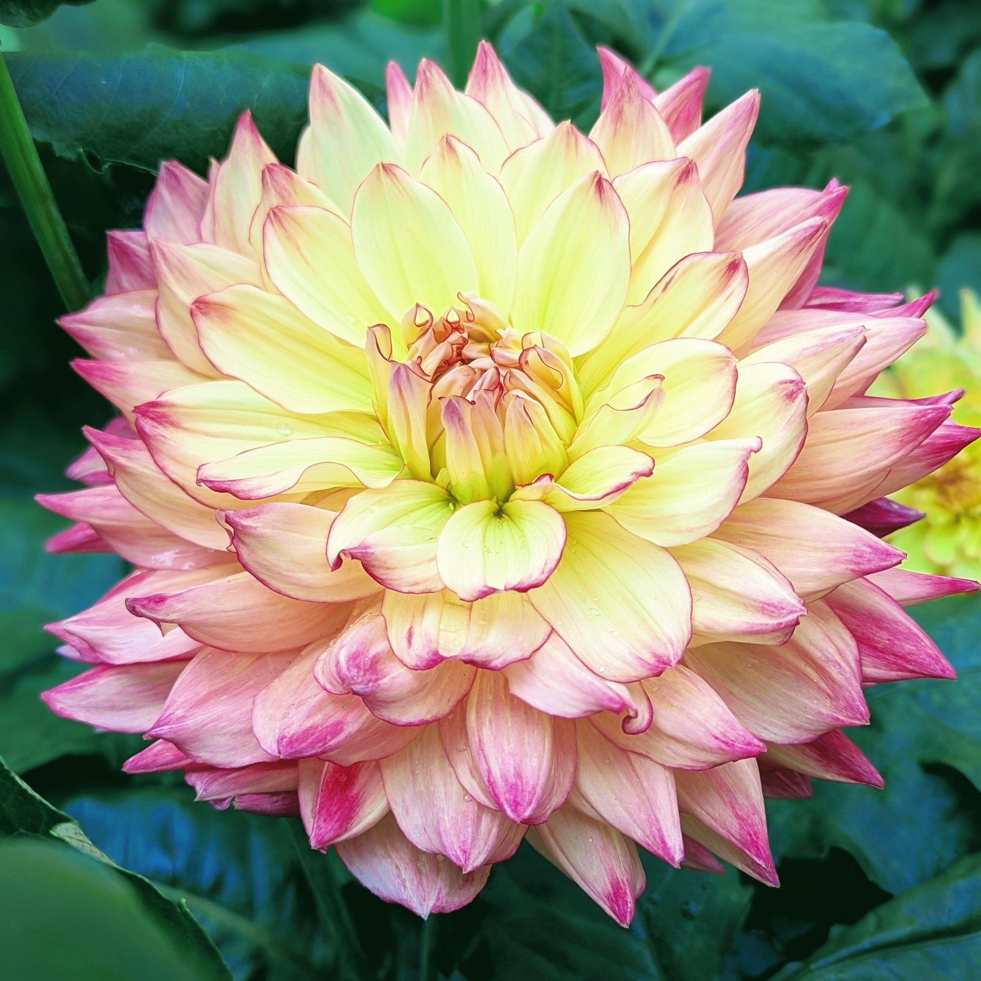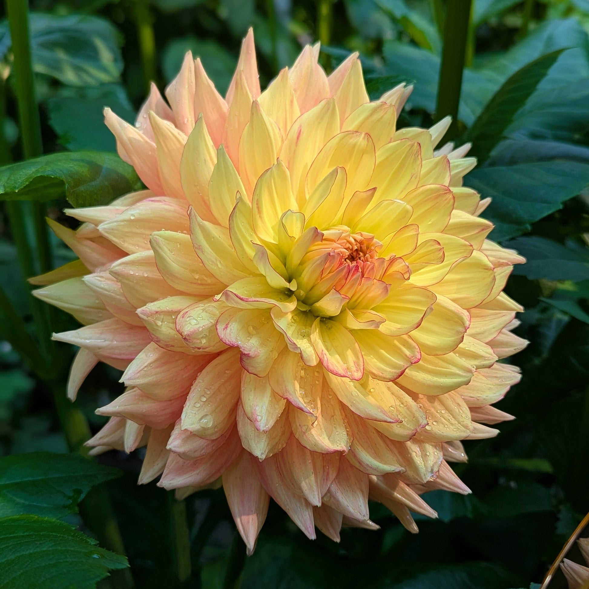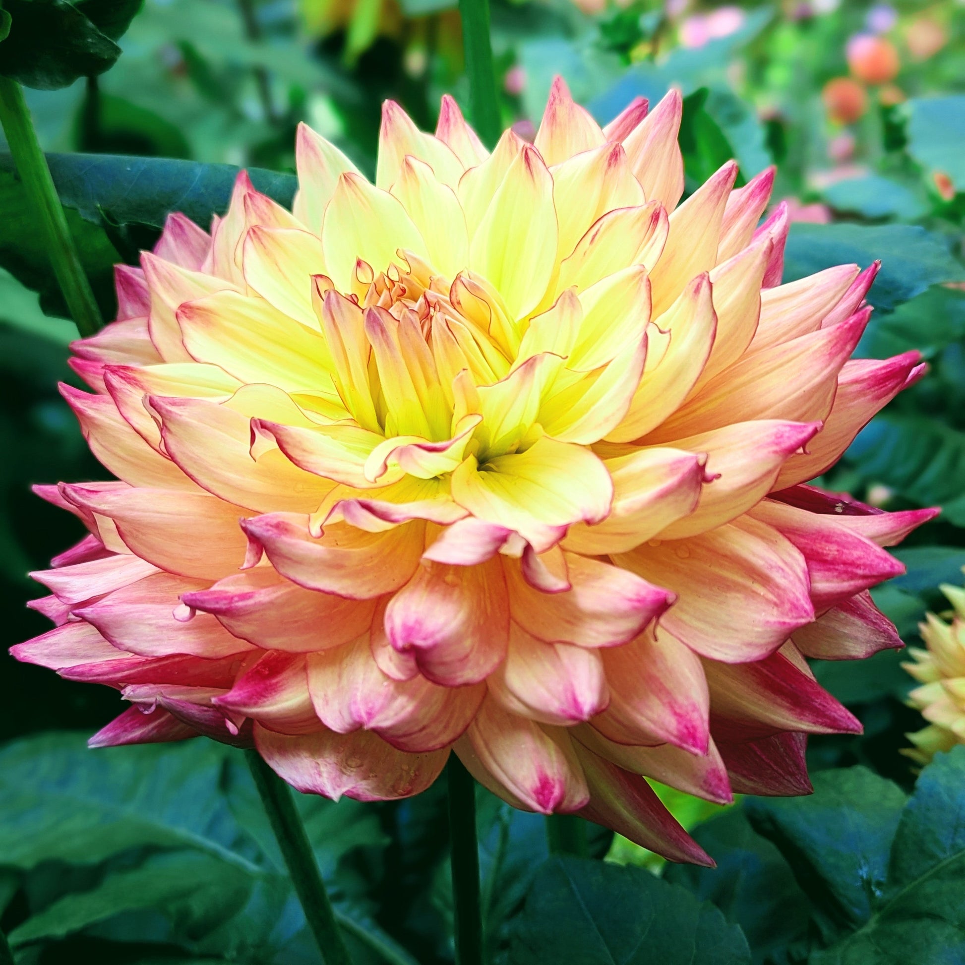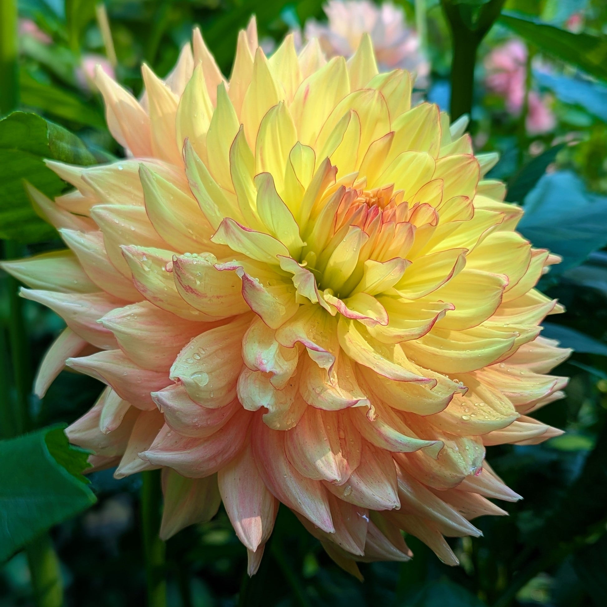Pretty pink picotee and I'm sold! Ruffled lemon petals in the center, and peachy tones near the back, all accented by a vibrant pink.