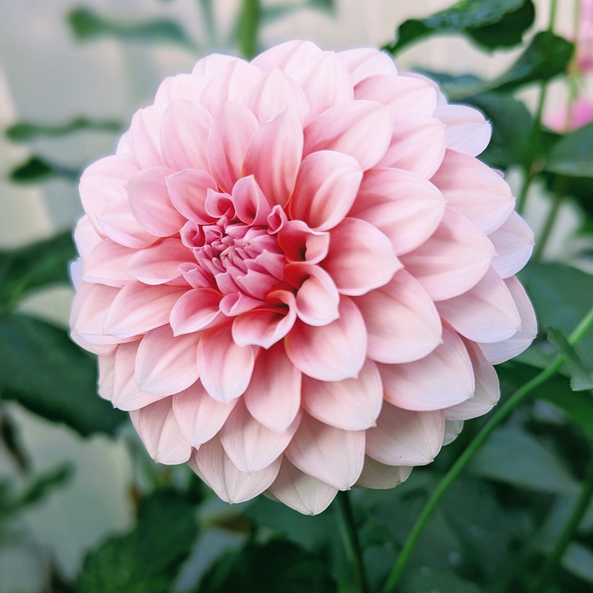 The softest baby pink fades out to white on delicate petals. Many growers suggest an area with afternoon shade. For us, she was growing along the fence, and she looked great with the shade she received. As an informal decorative she sometimes shows some wavy petals.
