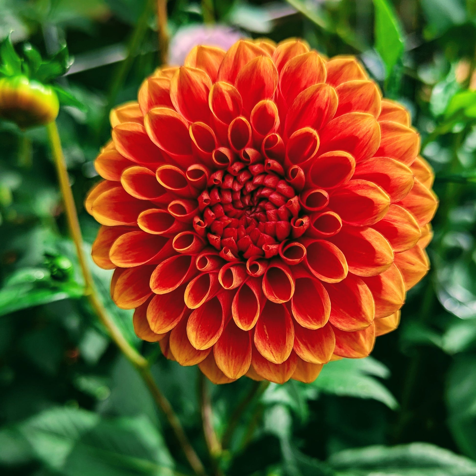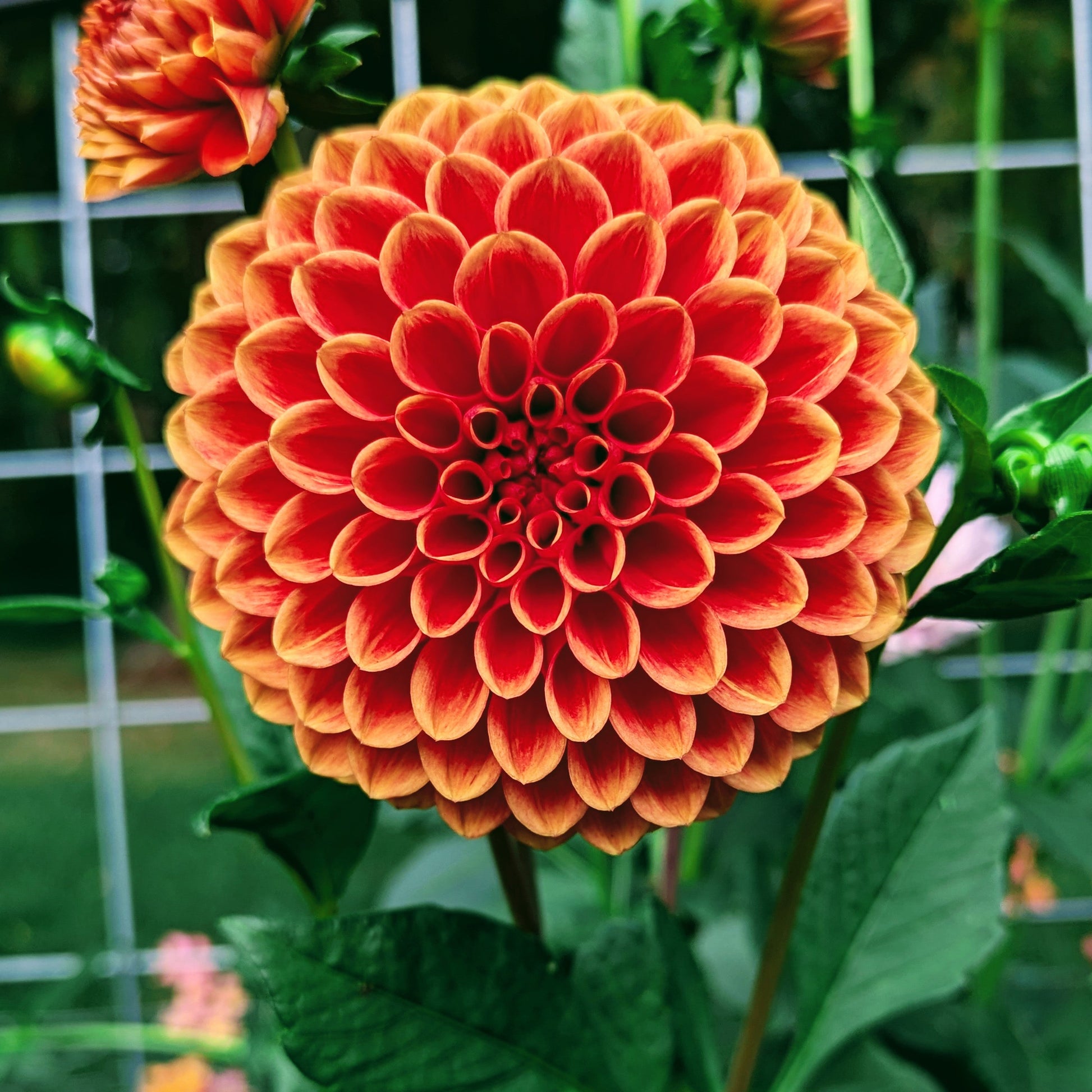 Orangey-red blooms with a lighter outline give Ruskin Gypsy a fantastic mandala effect. Blooms all season, but those colors say autumn to me!
