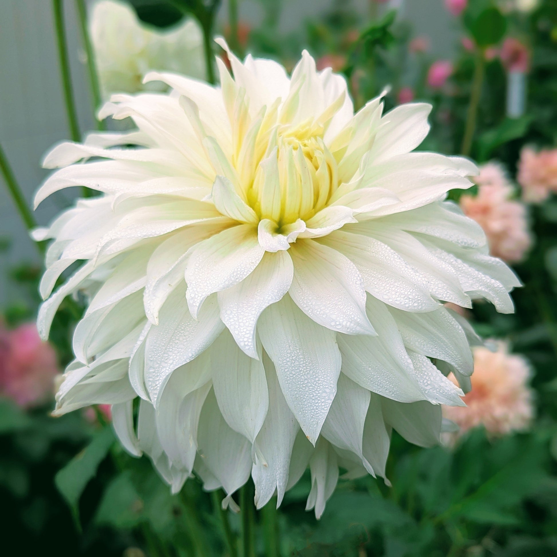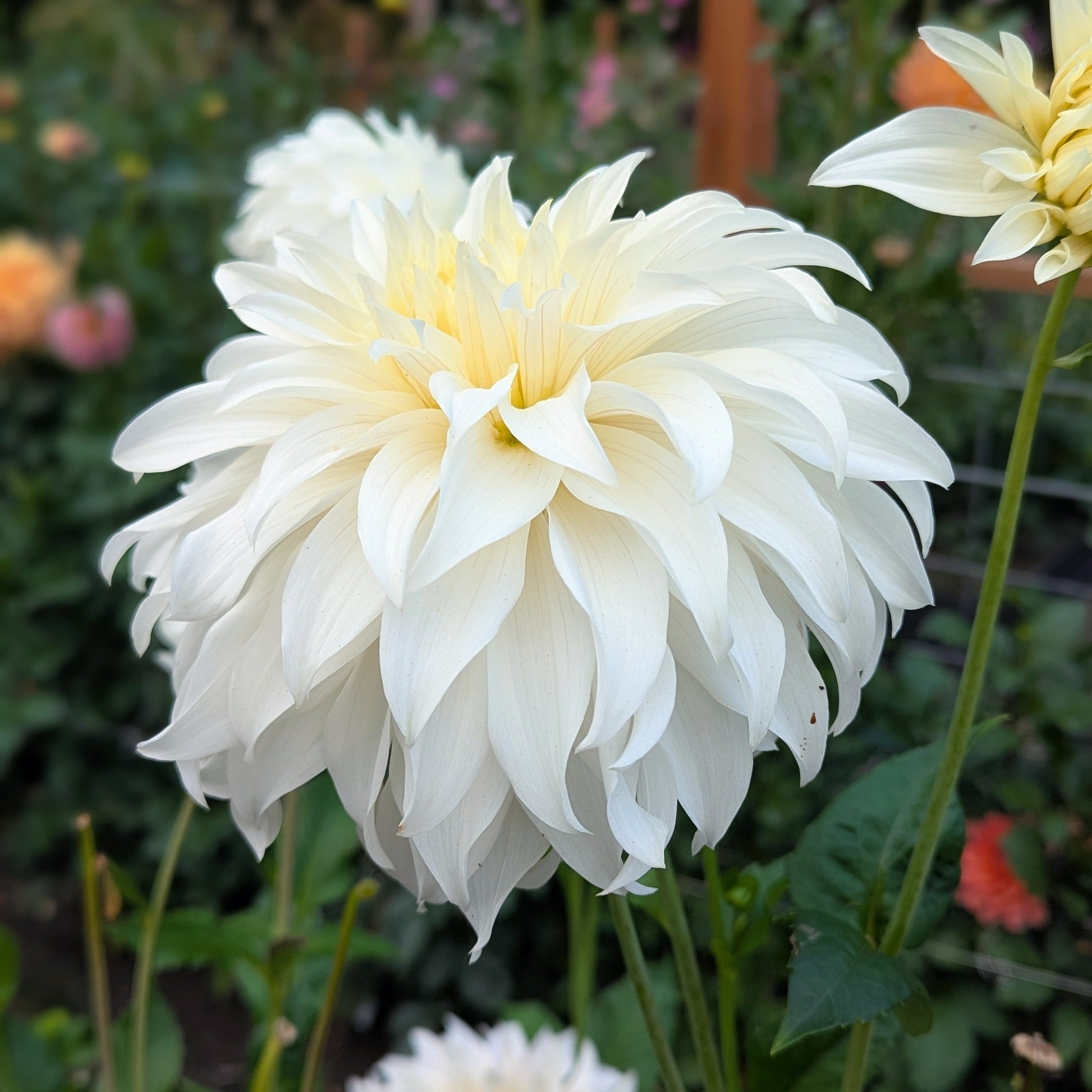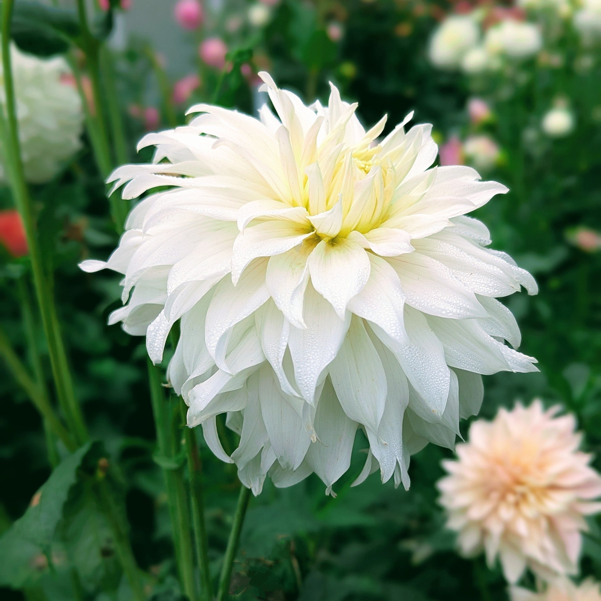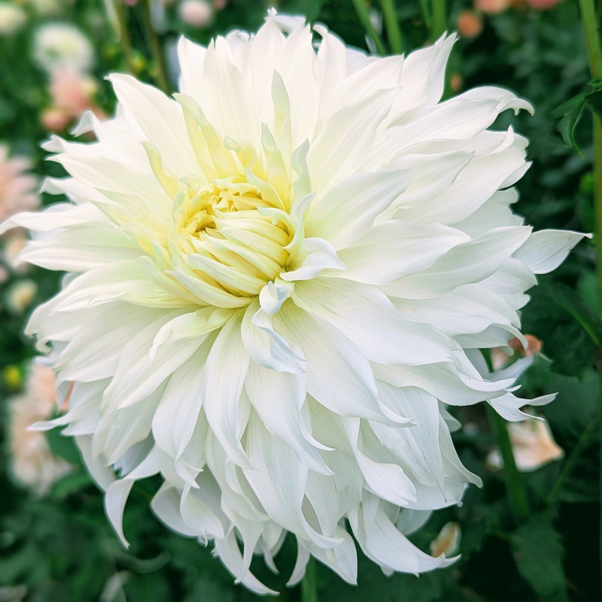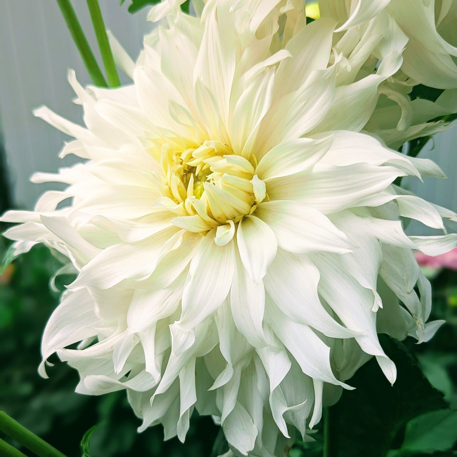 This may have been my favorite white dahlia this year. Twisty, white petals reflex back giving her a fluffy tousled look. A fantastic choice for large arrangements.